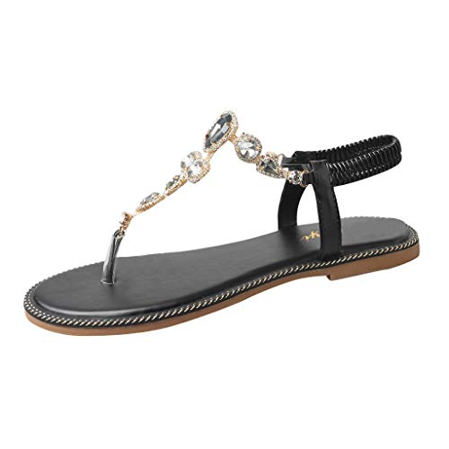 Daoope Sandali Donna Estive Eleganti Boemia Strass Flip Flop Flat Sandali - Scarpe Estivi Donna Casual Sandali Donna Bassi Cinturino Caviglia Sandali Mare Verde militare Nero 34-39 EU