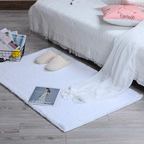 DAOXU Morbido Tappeto Pelliccia di Coniglio, Finta Pelliccia di Agnello, Ideale per Soggiorno, Camera da Letto, Cameretta (Bianco, 75 x 120 cm)