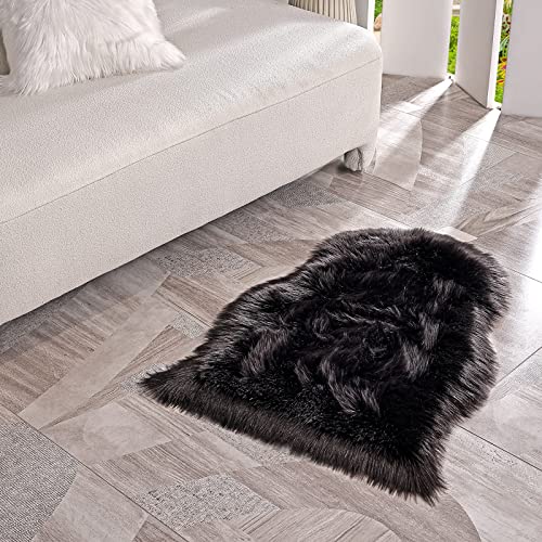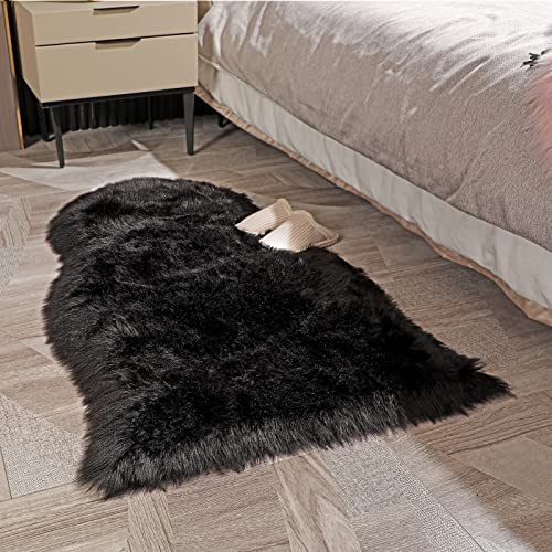 DAOXU Tappeto in Pelle di Pecora in Pelliccia Sintetica, Tappeto Peloso Imitato in Pelliccia Sintetica a Pelo Lungo Super Morbido, Utilizzato per la Decorazione della Camera da Letto 60x90 cm, Nero