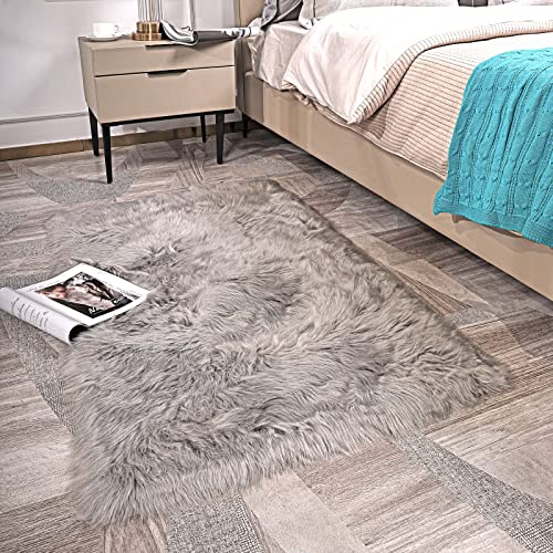 DAOXU Tappeto Pelliccia - Tappeti Salotto Moderni Shaggy Elemento Decorativo In Lana Scendiletto Tappeto Pelo Lungo (60x90cm - Grigio)