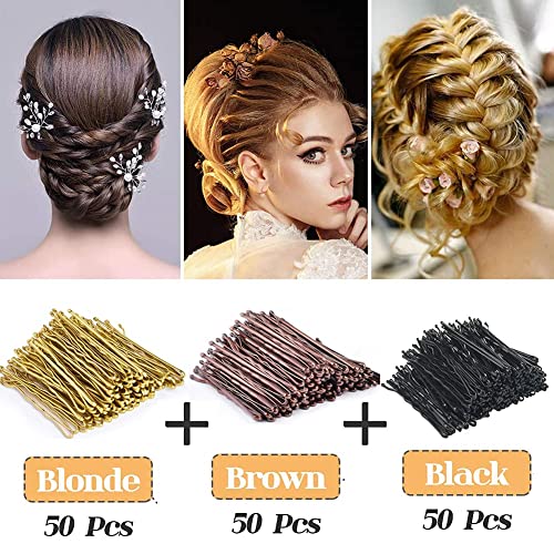 DAQIEPIN Bobby Brush 150 forcine per capelli in metallo forma ondulata colore nero oro marrone per donne e ragazze con scatola per capelli 5 cm