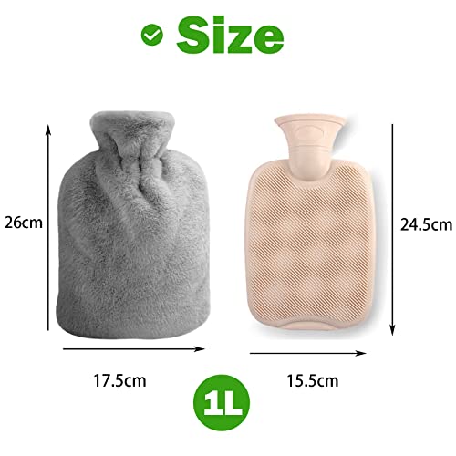 DARBEY Borsa Acqua Calda, 2 Pezzi 1,5L Borsa Acqua Calda Peluche per Alleviare il Dolore, Schiena, Collo -Ottimo Regalo per Madre e Padre(Grigio,Rosa)