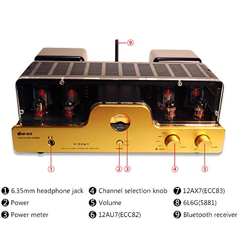 DESIGN DI PRIMA SCELTA: Tutti i componenti dell'amplificatore valvolare I30BT sono di prima qualità, condensatore giapponese, potenziometro di alta qualità, trasformatori di potenza toroidali da 100W, spina di alimentazione IEC, prese valvolari placcate in oro, cavi di segnale placcati in argento, uscita cuffie placcata in oro, uscita altoparlanti placcata in oro.