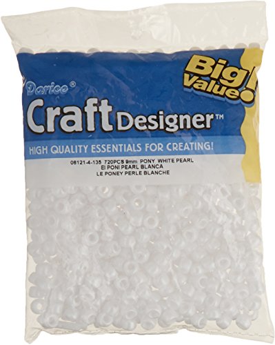Darice Pony Beads 6mmX9mm 720/Pkg-Pearl White, Bianco