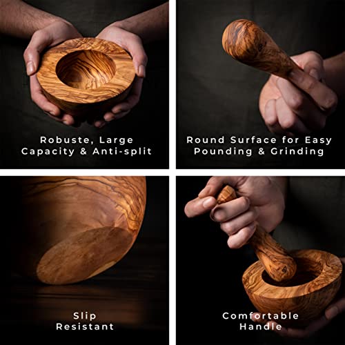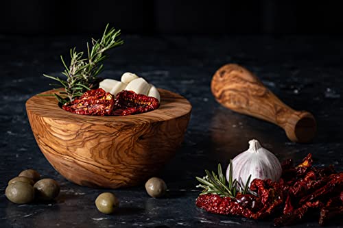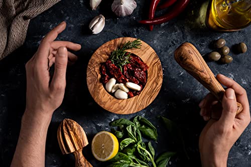 DARIDO Mortar Set with Pestle in Natural Olive Wood - Garlic Squeezer - Aromatic Herb Grinder - 18x12 cm - Spice Grinder in Olive Wood - Nut Grinder Bowl - Kitchen Accessories (Piana)