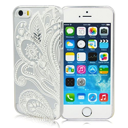 Darin Custodia Cover Case Ultra Slim Hard Plastica Custodia Protettiva Case Cover per Apple iPhone 5 5S - Henna White Floral Paisley Flower Mandala