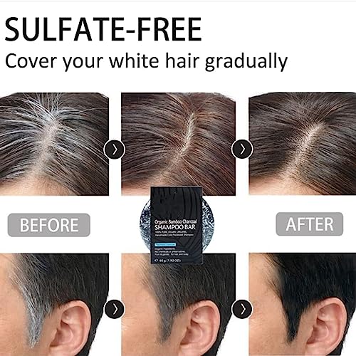 2 PCS Hair Darkening Charcoal Shampoo Bar, Organic Bamboo Charcoal Shampoo Soap, Solid Shampoo Soap for Repair Dry Damaged Hair, Make Hair Shinier