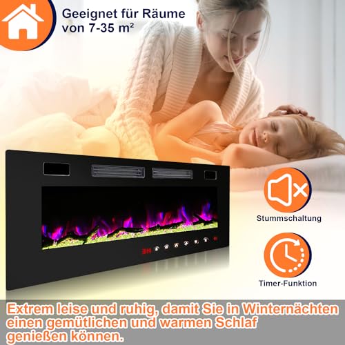 Facile da regolare: il camino elettrico a parete ha 5 livelli di luminosità e 5 velocità di combustione della fiamma, è possibile regolare la luminosità e l'effetto fiamma in base alle proprie preferenze e sperimentare la vera fiamma LED per creare un'atmosfera romantica. Ha una modalità timer da 1 a 12 ore e modalità silenziosa per garantire un sonno senza preoccupazioni.