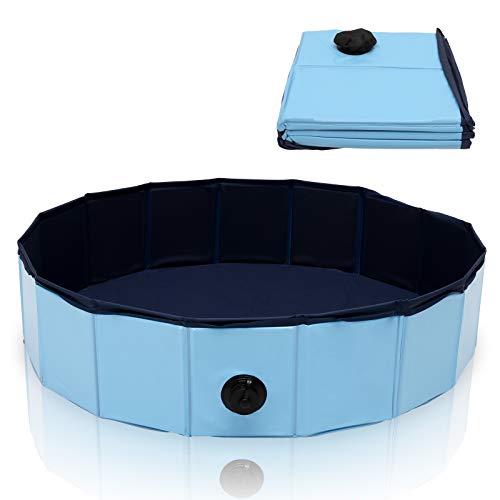 Daromigo Piscina per cani, 80 x 20 cm, pieghevole, con valvola di scarico, in PVC, resistente all'usura, per cani e gatti