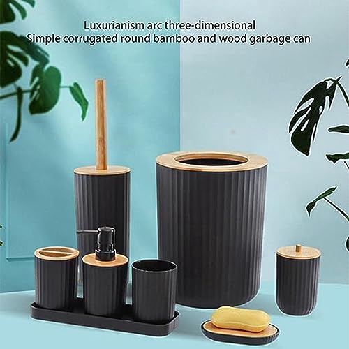 Daroplo 1 set di accessori da bagno, vassoio in plastica, set da 8 pezzi, colore nero e legno