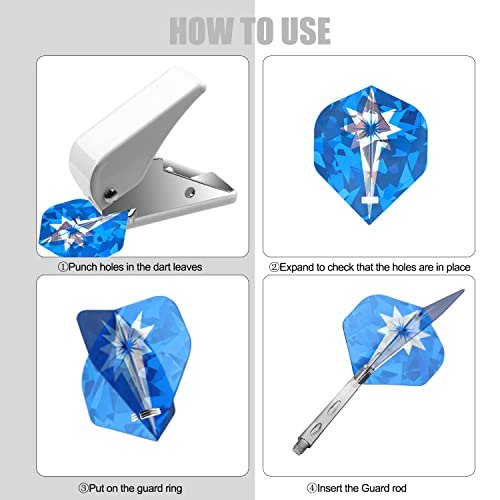 Facile da Usare: Il punzone di volo fora un foro rettangolare nei voli del dardo per integrare l'anello dell'albero del dardo. Piccolo e facile da trasportare. Perforare un volo alla volta, inserire l'anello nel foro e farlo scorrere insieme sull'albero.