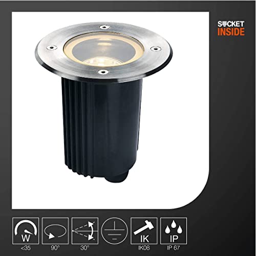 SLV DASAR 80 terrazza, faretto Incasso da Giardino, Lampada da Terra per Esterno / GU10 IP67 35W Inossidabile, Acciaio Inox