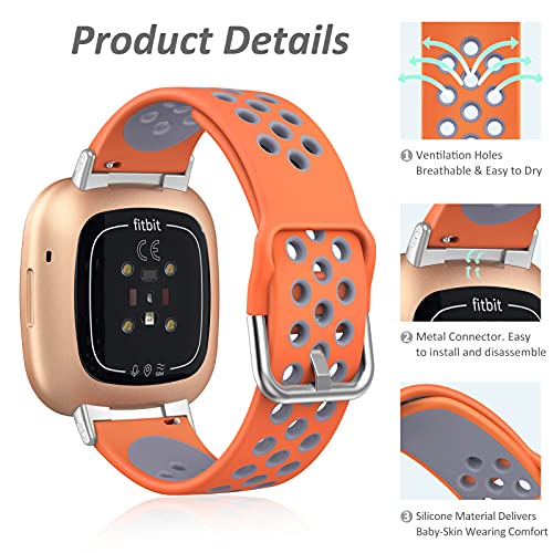 Dasbulk Cinturino Compatibile con Fitbit Versa 3/Versa 4/Fitbit Sense/Sense 2, Cinturino di Ricambio in Silicone Morbido per Fitbit Versa 3/Versa 4/Fitbit Sense/Sense 2, Arancione-Grigio, Grande