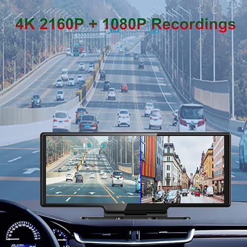 【Registrazioni 4K +1080P】 T30 telecamera per auto con touch screen da 10,26 pollici. Ha una doppia telecamera che registra contemporaneamente, 4K UHD 2160P per la telecamera anteriore e 1080P per la telecamera posteriore. La dashcam ha un angolo di visione molto ampio, 170 gradi davanti e dietro. Facilita l'acquisizione di targhe, segnali stradali e altri dettagli chiave sulla strada.