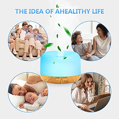 DASIAUTOEM Diffusore di Oli Essenziali, 450ML Umidificatore Ultrasuoni Diffusore di Aroma Diffusori, Telecomando 7 Colori LED Umidificatore Ambiente per Soggiorno, Camera Letto, Bambino, Spa, Ufficio
