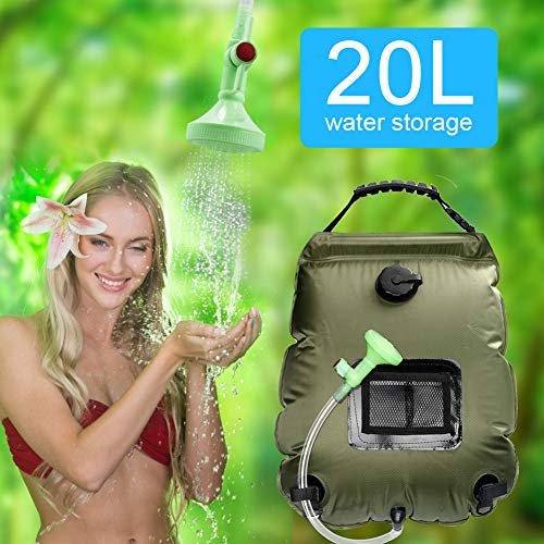 DASIAUTOEM Doccia solare da campeggio, 20 L, Borsa da Doccia Energia Solare, Riscaldamento Solare, Borsa per Esterni Acqua Calda Soffione Estraibile Rimovibile per Escursioni all'Aria Aperta