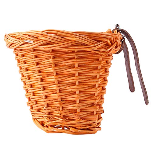 Dasing Cestino per bici in vimini per bambini Cestino anteriore per bicicletta in vimini Cestino per montaggio manubrio Cestino portaoggetti in rattan intrecciato a mano Facile da installare staccabile