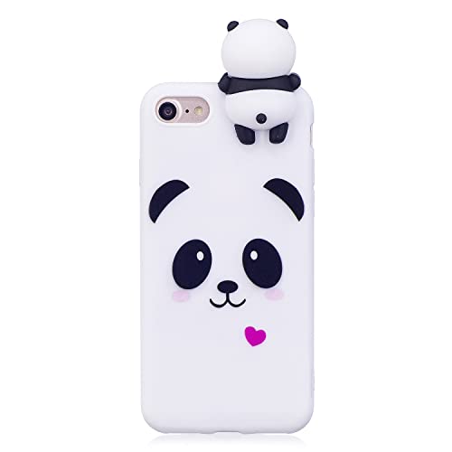 DasKAn Moda Custodia per iPhone 7/8,Carino Bianca Panda 3D Cartoon Animale Bambola Disegno Indietro Cover AntiGraffio Flessibile Morbido TPU Silicone Protettivo Custodia per iPhone 7/8