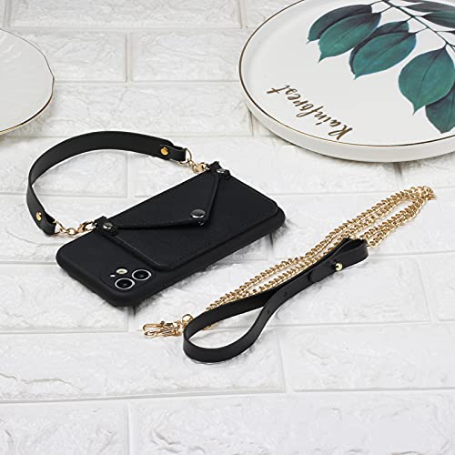 DasKAn - Custodia per iPhone 12 Pro Max da 6,7", con tasca e tracolla, design anti-graffio, antiurto, tinta unita, opaca, morbida, in silicone gel TPU, colore: Nero