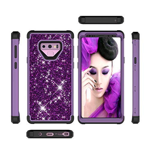 DasKAn 3 in 1 Custodia per Samsung Galaxy Note 9,Bling Diamante Glitter Ibrido Cover Antiurto Dura PC + Morbido TPU Bumper Heavy Duty Full Body Custodia per Samsung Galaxy Note 9,Viola + Nero