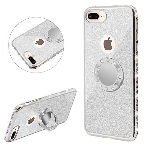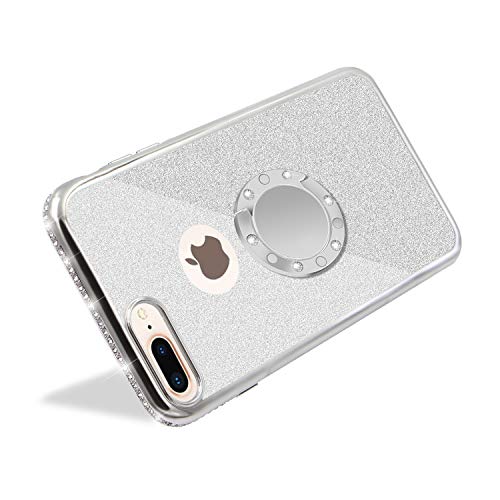 DasKAn Custodia per Telefono Trasparente con Brillantini diamantati per iPhone 6/6S con Supporto per Anello Magnetico, placcatura in Bling Custodia Protettiva in Gel TPU in Silicone Slim Fit, Argento