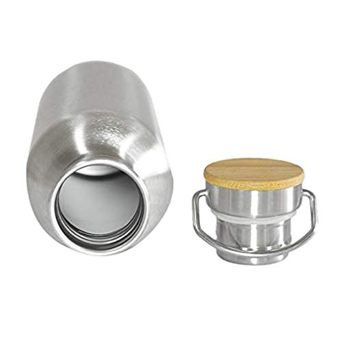 Dasket Borraccia in acciaio inox a prova di perdite, da viaggio, ciclismo, escursionismo, campeggio, con coperchio in bambù (350 ml)