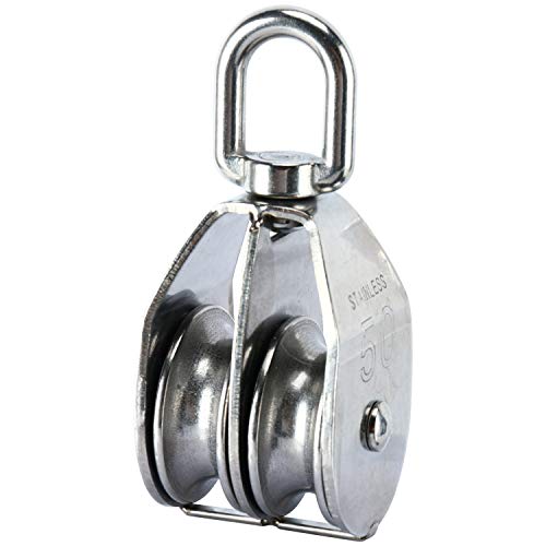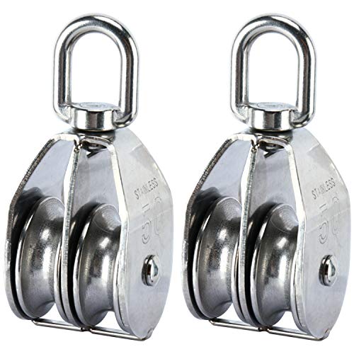 DasMarine - Confezione da 2 bozzelli doppi in acciaio inossidabile 304, con gancio di sollevamento girevole e caricamento con rullo a puleggia doppia (M50)