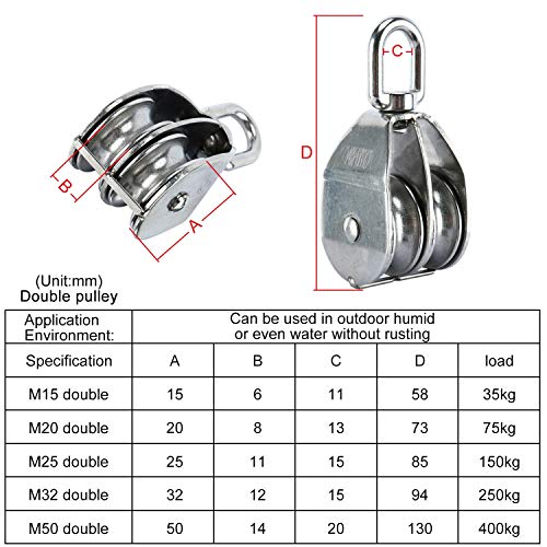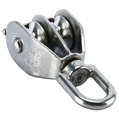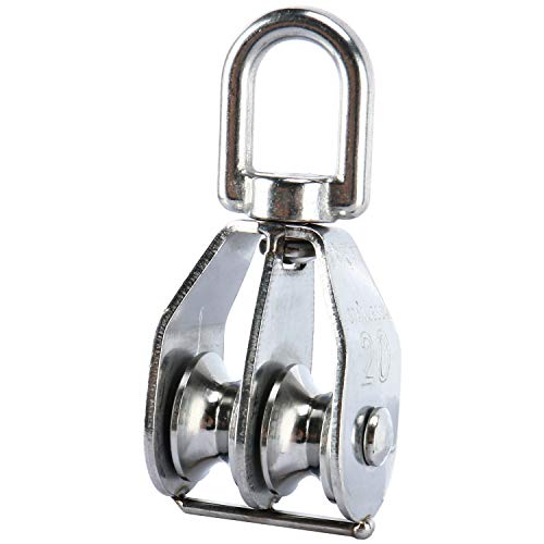 DasMarine, Confezione da 3 bozzelli doppi in acciaio inossidabile 304, con gancio di sollevamento girevole e caricamento con rullo a puleggia doppia (M20)