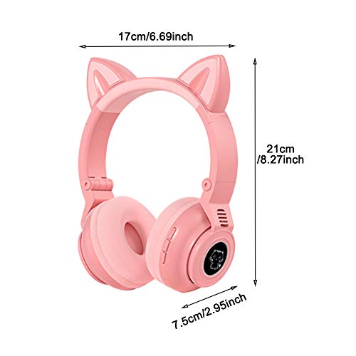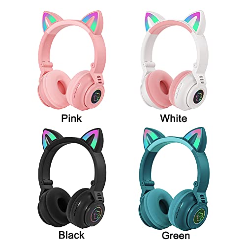 DASNTERED Cuffie da gioco con orecchie da gatto, Bluetooth 5.0, senza fili, con luce LED, per bambini, adulti (nero)