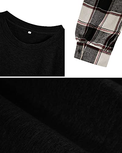 Datasy Abiti da ponticello per le donne Abito scozzese a maniche lunghe in tartan allentato magliette lunghe tunica Plus Size Skater Dress Inverno, Nero, M