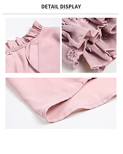 Datasy Camicia da donna in pizzo, bella camicia elegante chiffon, con scollo a V, a maniche lunghe, da donna, alla moda, invernali, chic, Rosa, XL