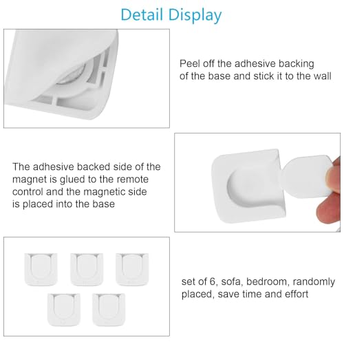 DATIFF 6 supporti magnetici per telecomando, supporto magnetico, da parete, senza fori, per casa, ufficio, scuola (bianco)