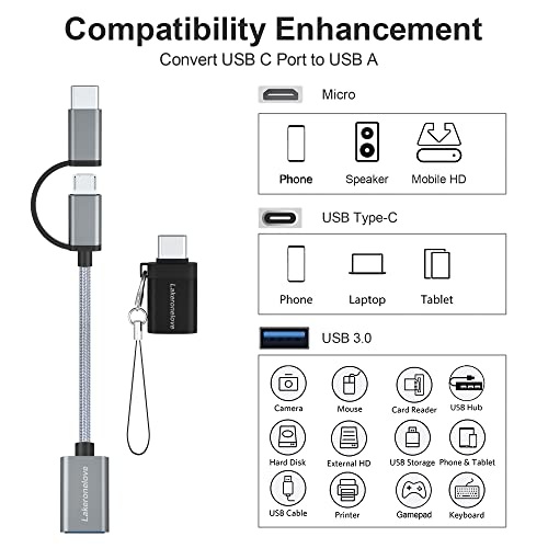 Design adattatore 2 in 1 da USB C/Micro a USB 3.0: questo adattatore USB OTG può convertire la porta USB-C/Micro in porta USB 3.0, adattatore da USB 3.0 a USB C per collegare disco rigido esterno, unità flash, gamepad USB, tastiere, hub, mouse, ricevitori Bluetooth e altre periferiche USB che supportano la funzionalità USB OTG. Consenti a smartphone/tablet/laptop/fotocamera di leggere o trasferire dati.