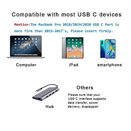 【MacBook Pro 2019/2020 si prega di inserire saldamente】: l'adattatore progettato per laptop e smartphone che utilizzano Type-C. I dispositivi più diffusi come MacBook Pro, Chromebook Pixel, Pixelbook, Surface Pro, Samsung N10, Pixel 4 XL. Si prega di notare che la porta USB C per MacBook Pro 2019/2020 è più solida rispetto al 2015-2018, si prega di inserire saldamente. Non utilizzare il cavo ThunderBolt 3 per caricare i dispositivi tramite questo adattatore, perché TB3 ha 24 pin e questo adattatore ha solo 20 pin, è possibile scegliere il nostro adattatore a 24 pin.