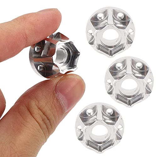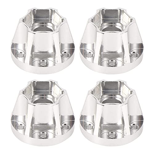 DAUERHAFT Adattatore per mozzi Ruota Esagonale da 1,9 Pollici, mozzo Esagonale Ruota RC 4 Pezzi, mozzo Esagonale Ruota 1/10 Argento in Lega di Alluminio Mozzo Esagonale Ruota Auto RC, per Auto RC