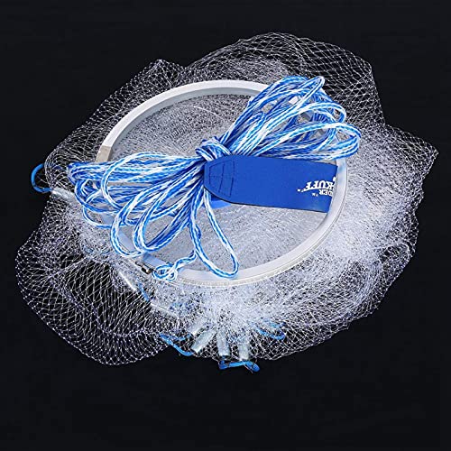 DAUERHAFT Rete da Pesca da tiro a Mano da 2,4 m, Rete da Pesca Americana, Rete da Pesca da Lancio per Acqua salata, con Cordino da 12 m, Materiale monofilamento in Nylon, Maglia Piccola da 0,5 Dita