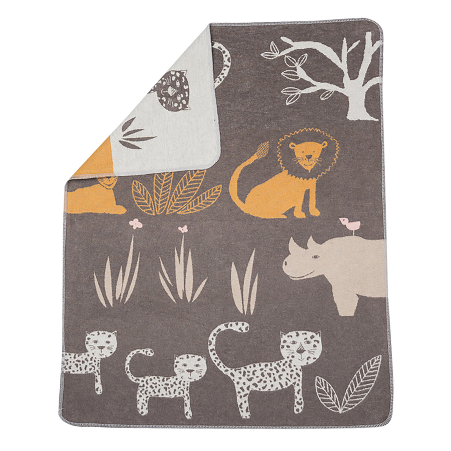 Coperta in flanella di cotone fine con un simpatico motivo giungla che può essere utilizzata in vari modi. Che si tratti di una coperta per carrozzina, di una coperta per coccole, di una coperta per gattonare, di una coperta per fasce o di una coperta per neonati, il vostro bambino sarà avvolto al caldo e al riparo in un batter d'occhio. Dettagli del prodotto: Coperta leggera adatta per l'estate o l'inverno Dettagli tecnici: Materiale: 95% cotone, 5% viscosa Dimensioni: larghezza x lunghezza 70 x 90 cm Istruzioni per la cura: Lavabile fino a 30 °C con ciclo delicato Non adatto all'asciugatura in asciugatrice