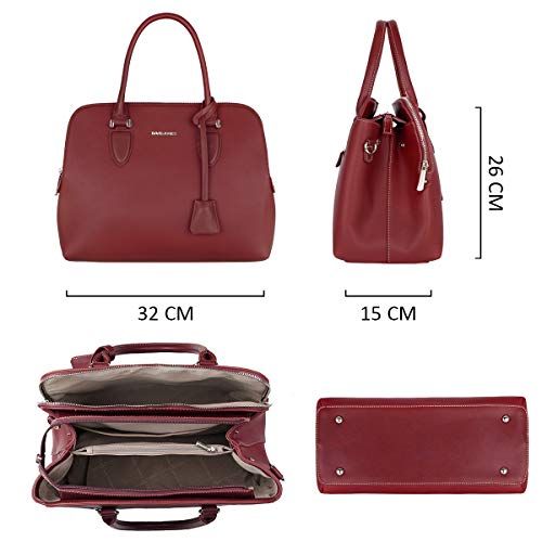 David Jones - Borsa a Mano Bugatti Elegante Donna - Borsa a Tracolla Spalla PU Pelle Molte Tasche Scomparti - Tote Shopper Bag Borsetta Grande Lavoro Satchel Cartella Manico Superiore - Rosso