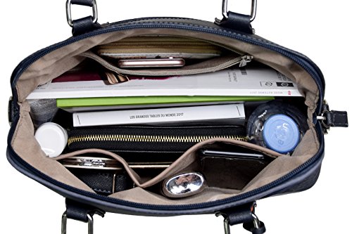David Jones - Borsa a Mano Donna Bugatti - Satchel Tote Shopper Bag a Tracolla Spalla Elegante - Patchwork Multicolore PU Pelle - Borsetta Strisce Signora Moda Quotidiana - Borsa Grande - Blu Scuro