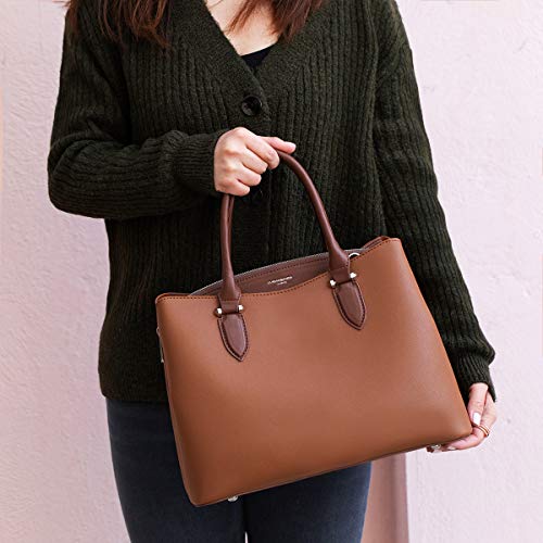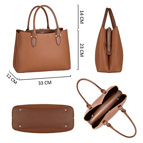 David Jones - Borsa a Mano Donna - Borsa a Spalla Tracolla PU Pelle - Satchel Media Elegante Tote Shopper Bag Molte Scomparti Tasche - Elegante Quotidiana - Marrone