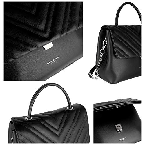 David Jones - Borsa a Tracolla Catena Trapuntata Donna - Borsa a Mano Spalla PU Pelle Media - Messenger Crossbody Bag - Borsetta Elegante Satchel Sera Noche Quotidiana Moda Chevron Clutch - Nero