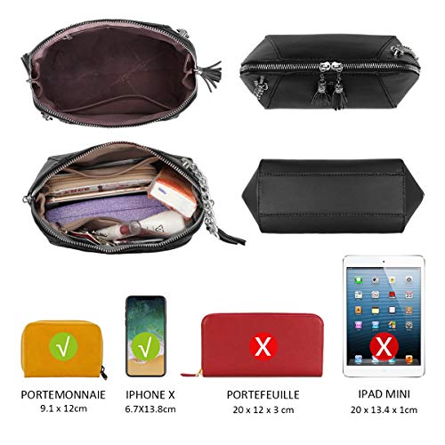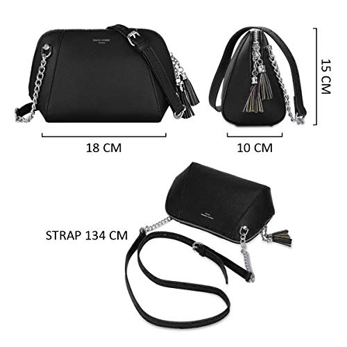David Jones - Borsa a Tracolla Donna Piccola - Borsetta Spalla Catena PU Pelle - Messenger Crossbody Bag Signora - Pochette Clutch Sera Noche Nappa - Moda Carina Elegante Quotidiana - Nero