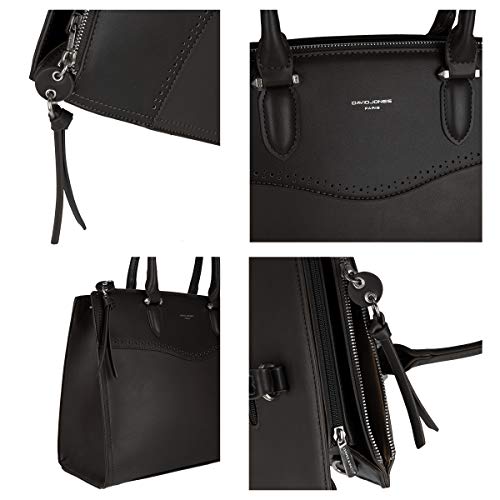David Jones - Grande Borsa a Mano Donna Elegante - Borsa a Spalla Tracolla PU Pelle Capiente - Satchel Tote Shopper Bag Lavoro - Molte Tasche Scomparti - Quotidiana Moda - Nero