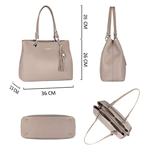David Jones - Grande Borsa a Spalla Donna PU Pelle Morbida - a Mano Capiente Manico Lungo - Tote Shopper Bag Capacità Media - Molte Scomparti Tasche - Beige