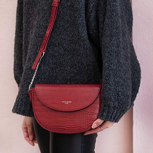 David Jones - Piccola Borsa a Tracolla PU Pelle Coccodrillo Donna - Borsetta a Mano Spalla Mezzo Giro Luna - Borsetta Pochette Messenger Crossbody Bag Clutch Moda Tendenza Elegante - Rosso