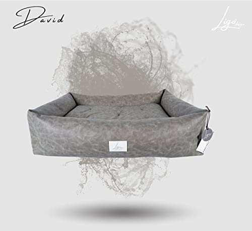 Ligo David - Morbida cuccia per cani in ecopelle vintage con cuscino trapuntato.Lettino per cane interamente Sfoderabile e lavabile. Cuccia artigianale Realizzata a mano in Italia (M, GRIGIO)