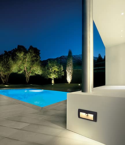 DAWALIGHT Applique da Incasso da Esterno Lampada da Parete a LED con Sensore di Movimento 6W 3000K Bianco caldo IP65 Impermeabile Scala di Luce per Cucina Giardino Patio, Alluminio, Grigio Scuro