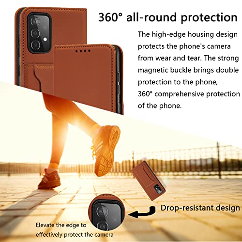 S. Dawezo Cover Samsung Galaxy A52, Libro Custodia Pelle Flip Portafoglio con Funzione di Supporto Carte Portacellulare Magnetica per Samsung Galaxy A52- Marrone