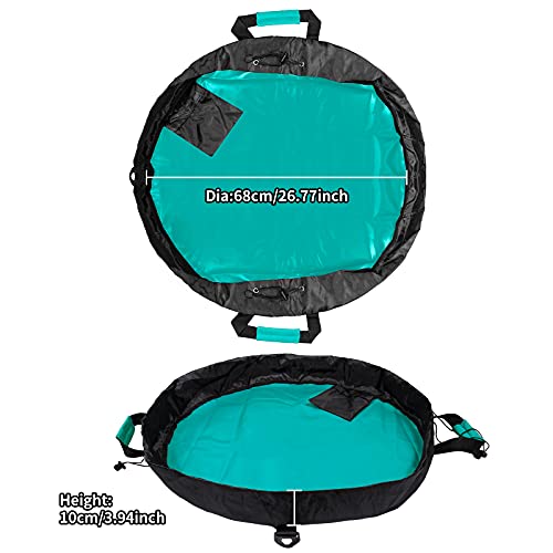 Durevole e portatile: realizzato con base in tessuto Oxford antistrappo e pareti laterali in fibra di poliestere. Questo tappetino misura 68 cm di diametro con una grande borsa aperta, facilmente tirare la corda di paglia per chiudere la borsa e portarla ovunque tu voglia