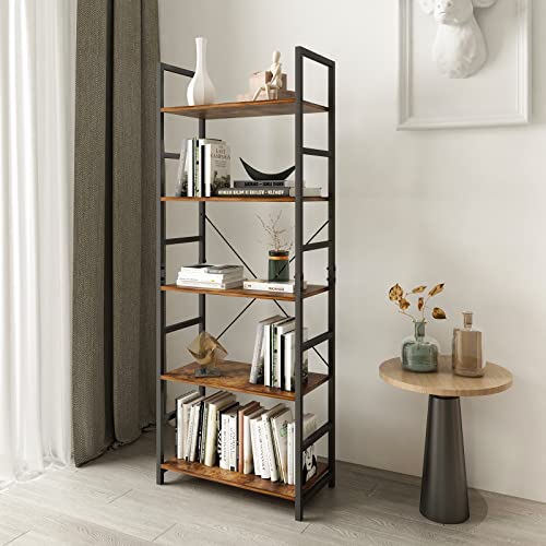 DAWNYIELD Libreria industriale alta in legno a 5 ripiani, organizer moderno per libri, per camera da letto, soggiorno, casa, ufficio, vintage